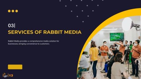 03| SERVICES OF RABBIT MEDIA Rabbit Media provides a comprehensive media solution for businesses, bringing convenience to customers. 13