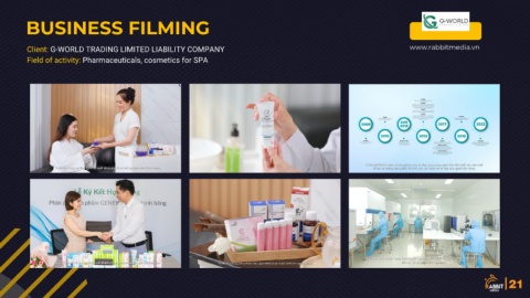 BUSINESS FILMING Client: G-WORLD TRADING LIMITED LIABILITY COMPANY www.rabbitmedia.vn Field of activity: Pharmaceuticals, cosmetics for SPA 21